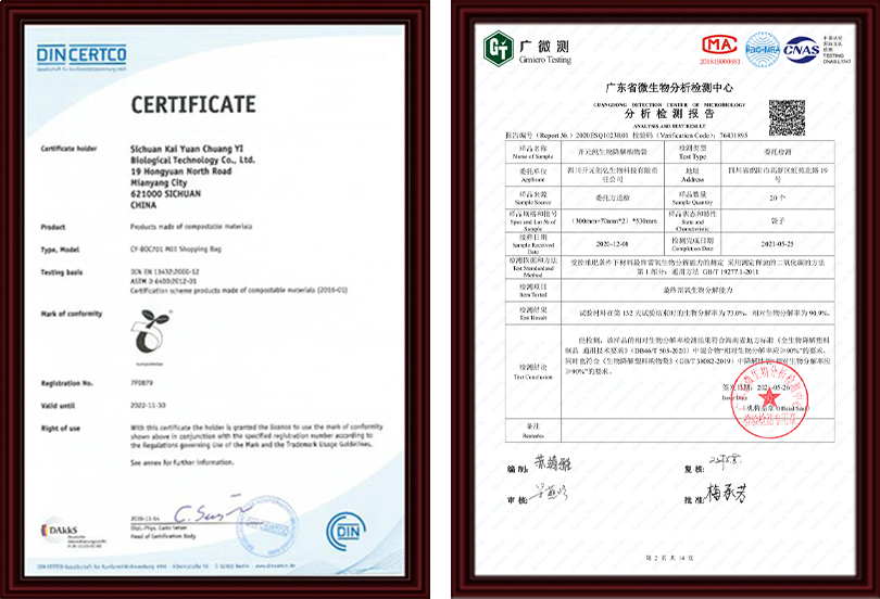 企业产品已经获欧盟幼苗认证及德国标准化委员会DIN认证等国际认证。开元牌纯生物降解膜系列产品具有如下特点:1、物理性能完全达到目前通用PE制品的指标;2、安全无毒,耐高温,可普遍适用于食品、婴幼儿用品的制作或包装;3、在堆肥条件下可100%降解,最终代谢为水和二氧化碳;4、降解时间可控,可以根据适用对象的生产使用需求,设定降解时间,以适应不同区域、不同种类的生产生活条件;
